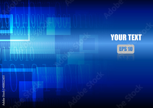 Vector : Abstract square and binary number on blue background