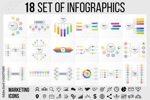 Vector 18 Set Of Infographics Template Design . Business Data Visualization Timeline with Marketing Icons most useful can be used for presentation, diagrams, annual reports, workflow layout