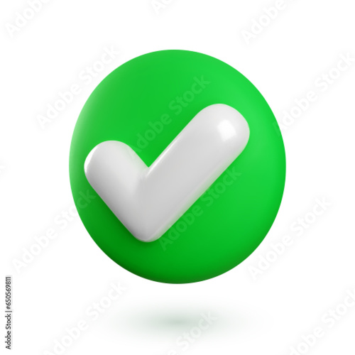 Vector 3d Check mark realistic icon. Trendy plastic green checkmark, select icon with shadow isolated on white background. Green yes button. 3d render tick sign illustration for web, app, design