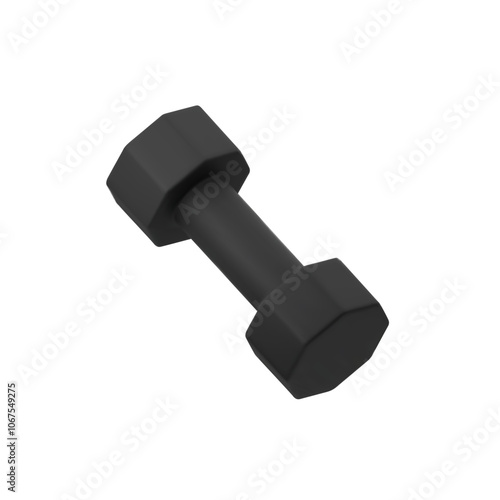 Vector 3D illustration of black hexagonal dumbbell, representing strength training and fitness. Suitable for gym, workout, and health-related designs. Simple and modern for versatile use
