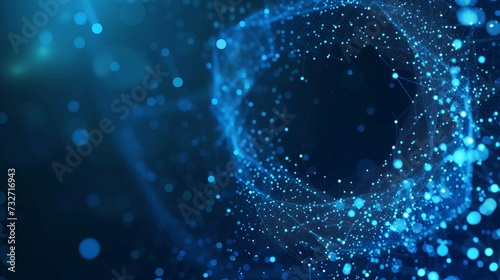 Vector abstract blue background frame of geometric shapes. Circular ornament. Pattern of dots, particles, molecules, fragments. Poster for technology,