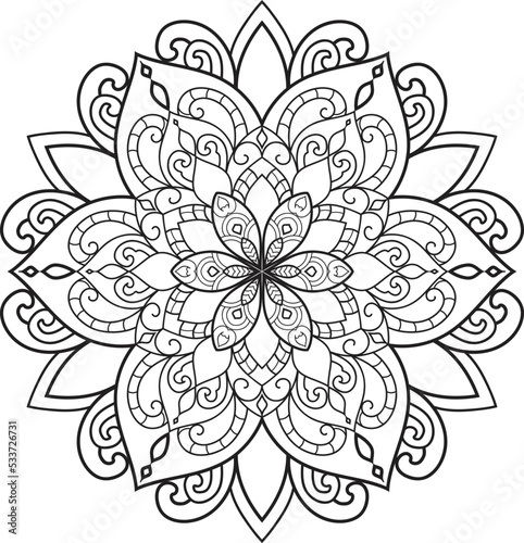 Vector abstract mandala pattern. Black and white illustration. Outline. Coloring page for coloring book.