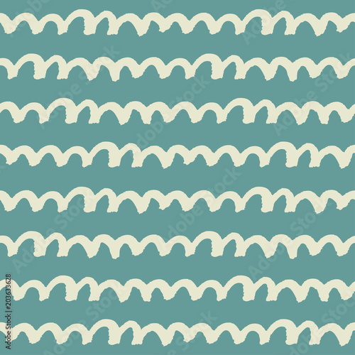 Vector abstract seamless pattern. Blue vintage texture with white wave lines.