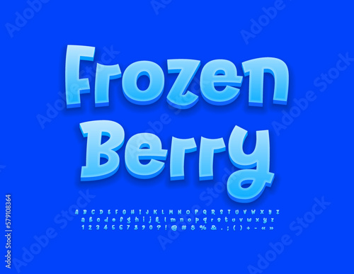 Vector advertising Sign Frozen Berry. Funny Blue Font. Bright Creative set of Alphabet Letters and Numbers