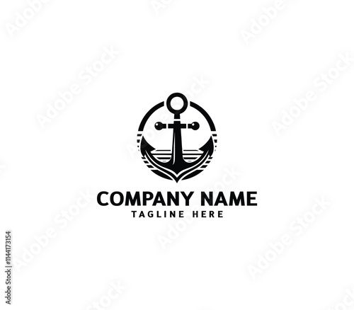 Vector anchor logo design. Marine retro emblems logo with anchor. Monochrome sea anchor illustration