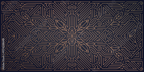 Vector art deco leaves pattern, luxury fancy ornament, prestige floral gatsby background. Gold on black nouveau illustration