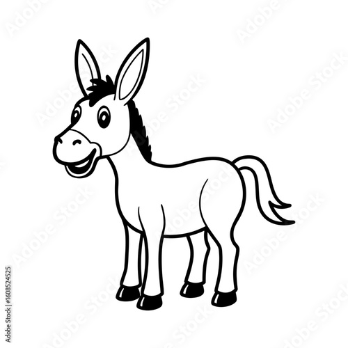 Vector art of a delightful cartoon donkey smiles gently, isolated on white background