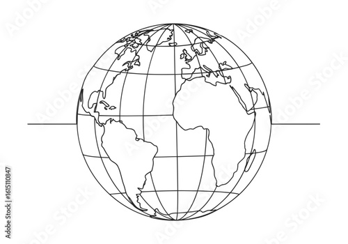 Vector art of a line drawing of planet earth showing continents and oceans