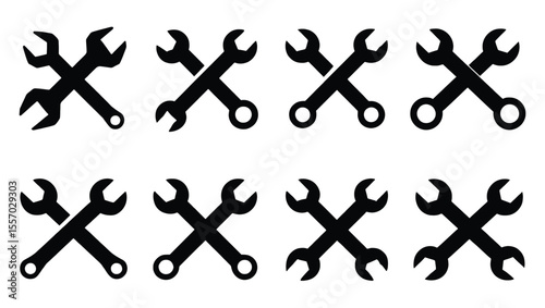 Vector art of a set of crossed wrench icons, perfect for repair or maintenance themes, isolated on white background