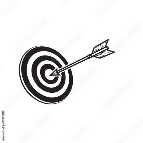 Vector art of arrow hitting the bullseye on a target isolated on white background