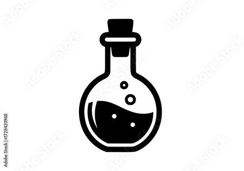 Vector art of black and white icon of classic laboratory flask for science and chemistry
