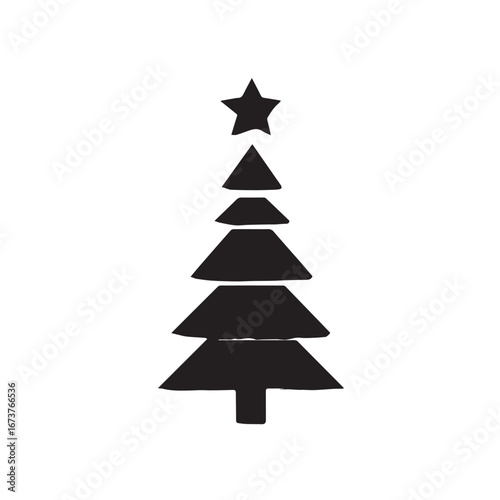 Vector art of black silhouette of a christmas tree with a star on top