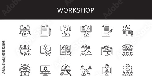 Vector art of icons representing workshop and business meeting concepts