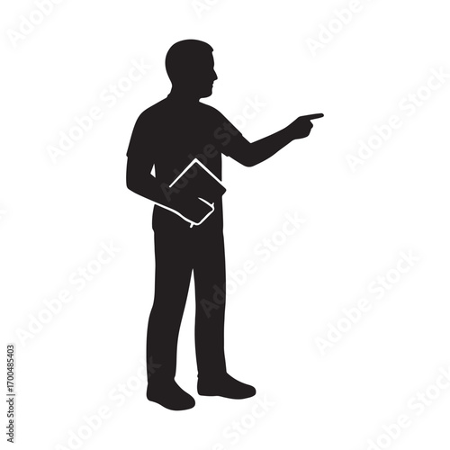Vector art of silhouette of a man pointing while holding a book