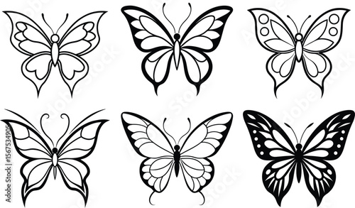 Vector art of six different butterfly illustrations isolated on transparent background