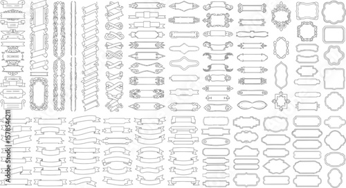 Vector banner frames and ribbon set for graphic design elements and creative projects and scrapbooking needs