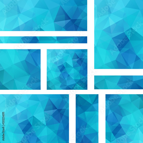 Vector banners set with blue polygonal abstract triangles. Abstract polygonal low poly banners.