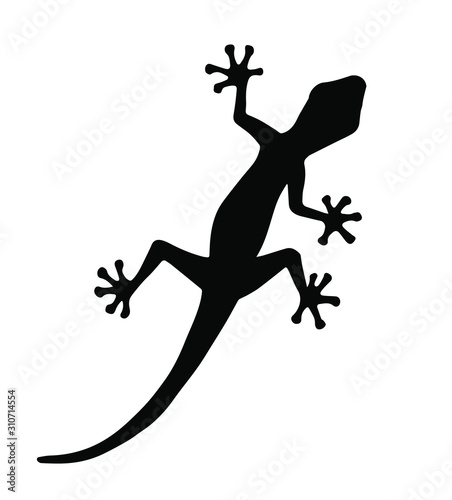 Vector black gecko lizard silhouette isolated on white background