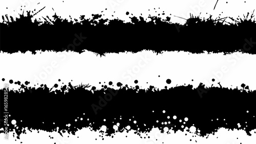 Vector black ink splatters and brush strokes arranged horizontally across a white background creating abstract art