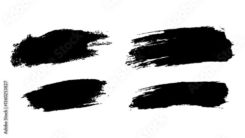 Vector black paint brush strokes set on solid white background. Creative black paint strokes on white background for artistic design and illustration projects
