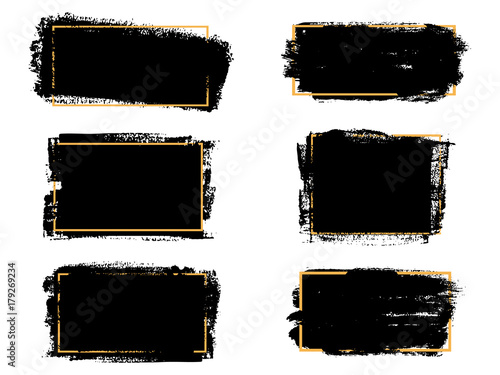 Vector black paint, ink brush stroke, brush, line or texture. Dirty artistic design element, box, frame or background for text.