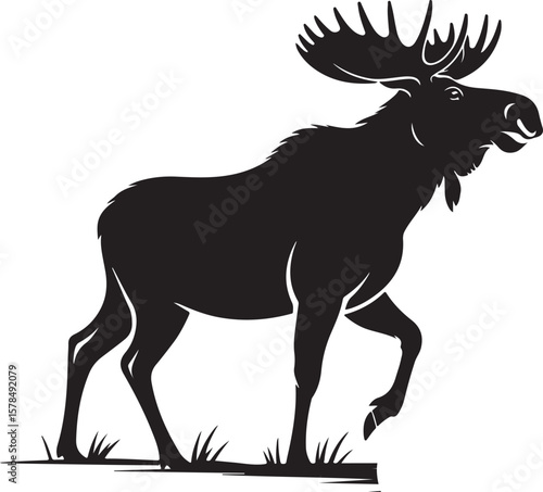 Vector black silhouette moose with horns