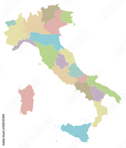 Vector blank map of Italy with regions and administrative divisions. Editable and clearly labeled layers.