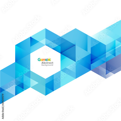 Vector blue geometric layout template on white background with space in hexagon. Modern background for business or technology, cover, online presentation website element.