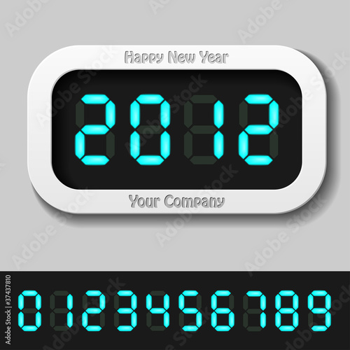 vector blue glowing digital numbers - new year 2012
