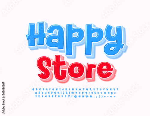 Vector bright Banner Happy Store. bright Blue 3D Font. Creative handwritten Alphabet Letters and Numbers