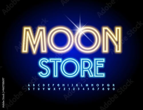 Vector bright Sign Shop Open with pink Uppercase Font. Neon glowing Alphabet. Illuminated Letters and Numbers set