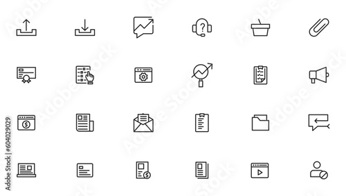 Vector business and finance editable stroke line icon set with money, bank, check, law, auction, exchance, payment, wallet, deposit, piggy, calculator, web and more isolated outline thin symbol