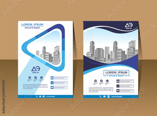 Vector Business brochure, flyers design template, company profile, magazine, poster, annual report, book & booklet cover, with green wavy line, and cityscape vector in background elements, size a4.
