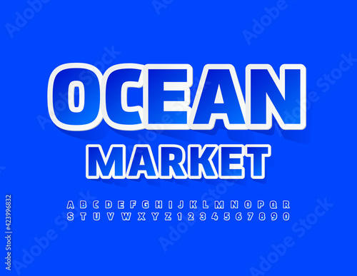 Vector business concept Ocean Market. Blue modern Font. Creative Alphabet Letters and Numbers set