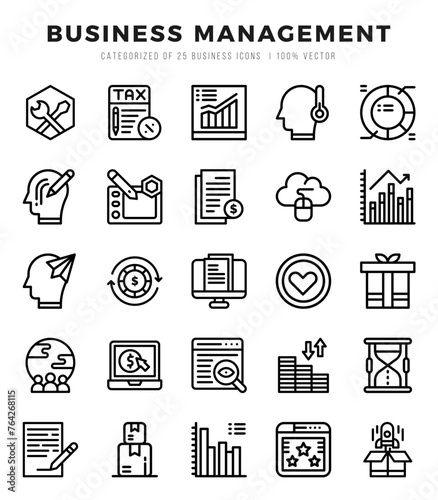 Vector Business Management types icon set in Lineal style. vector illustration.