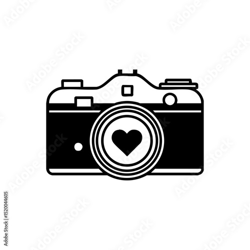 Vector camera icon with a heart-shaped lens and detailed line work, perfect for personal branding or creative portfolios.