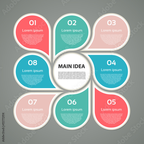 Vector circle infographic. Template for cycle diagram, graph, presentation and round chart. Business concept with 8 options, parts, steps or processes. Abstract background.