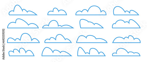 Vector cloud set blue color line style isolated on white background for holiday card, invitation, party poster, flyer, decor element, game. 10 eps