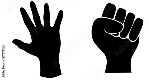 Vector collection of silhouettes of human hands depicting various movements, black on a white background.sqeas a graphic design element, Illustration in svg format. isolated white background