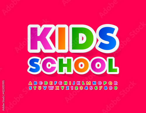 Vector Colorful Emblem Kids School. Modern Bright Font. Artisticl Alphabet Letters and Numbers