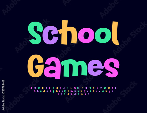 Vector colorful sign School Games. Funny handwritten Font. Creative Alphabet Letters, Numbers and Symbols.