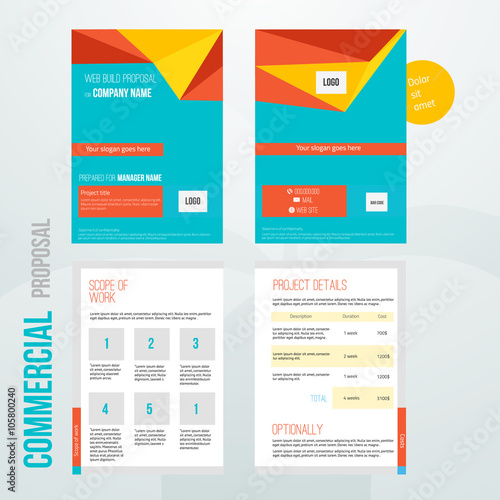 Vector commercial proposal design template for your business in bright colors. EPS10
