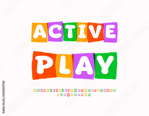 Vector Creative banner Active Play. Unique Children Font. Colorful Alphabet Letters and Numbers set.