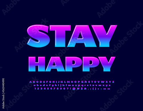 Vector creative Poster Stay Happy. Bright Glossy Font. Modern Alphabet Letters and Numbers