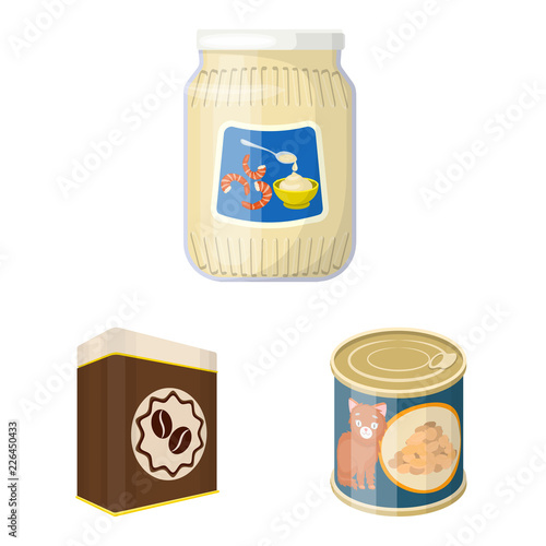 Vector design of can and food icon. Collection of can and package stock symbol for web.