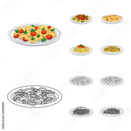 Vector design of pasta and carbohydrate sign. Set of pasta and macaroni vector icon for stock.