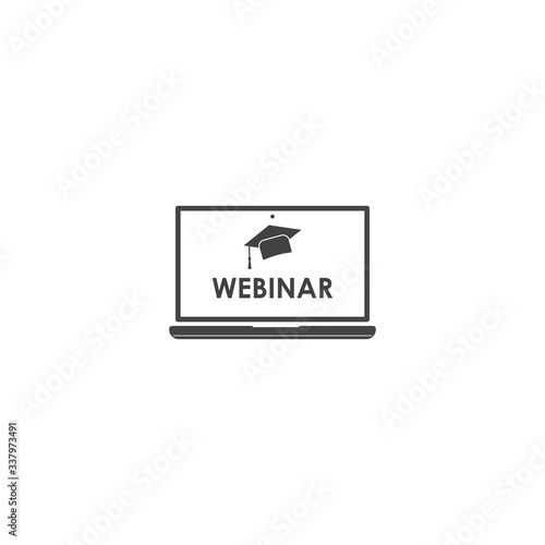 Vector distance learning icon. Icon of laptop and education symbol on white isolated background.