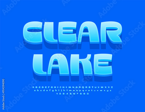 Vector eco template Clear Lake. Stylish Blue Font. Artistic Alphabet Letters and Numbers set.