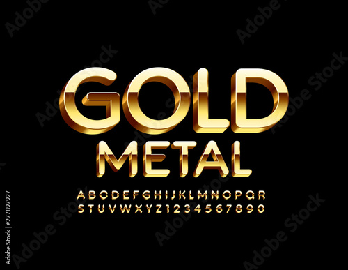 Vector Elite Gold Metal Alphabet. 3D Uppercase Font. Set of luxury shiny Letters and Numbers