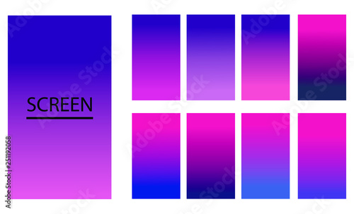 Vector EPS 10 Gradient Set. Different colors. Modern Smartphone screen, mobile app Template. Design for Wallpaper, background, banner, flyer, Social media post